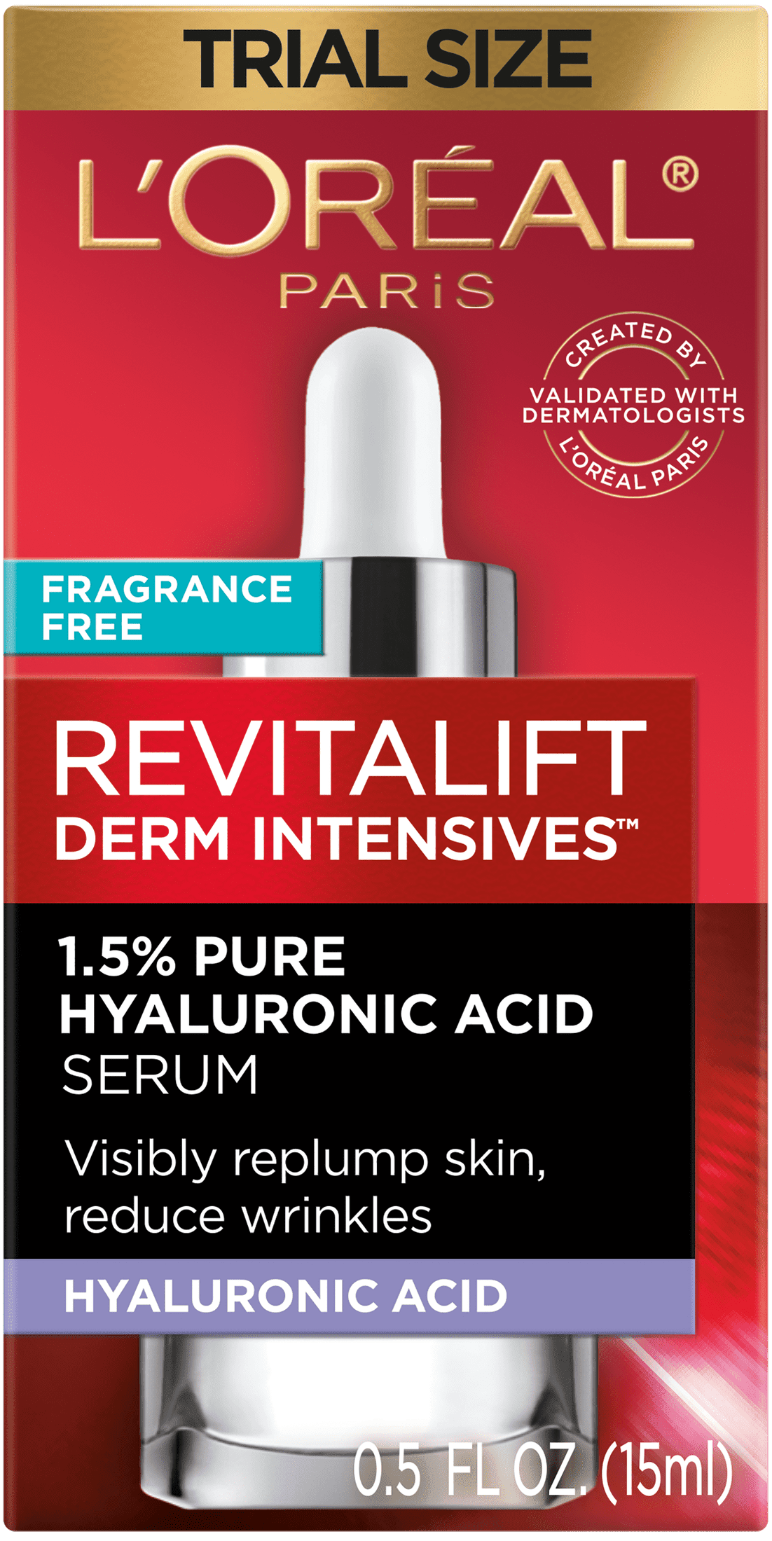 L'Oreal Paris Revitalift Pure Hyaluronic Acid Serum, A dermatologist validated, highly-concentrated, anti-aging plumping hyaluronic acid serum that immediately hydrates and fills wrinkles in 2 weeks. What Does Hyaluronic Acid Do? Hyaluronic Acid is naturally produced by our bodies and plays a critical role in skin's youthful look. Its natural production rapidly decreases as early late 20s and must be topically supplied as a key step after cleansing. Hyaluronic Acid is able to hold 1000x its weight in water.