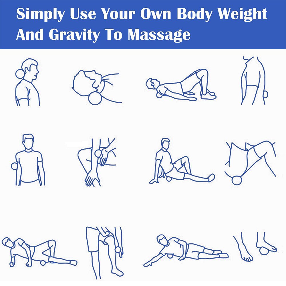 [Package includes]3-piece massage ball set - with different hardness and size levels (round ball blue - 6.5 cm / round ball red - 6.5 cm / oval black - 16 cm) you can achieve different trigger points and tensions. With our massage balls you get a "spiky round thing" for spot massage hard-to-reach body areas. We offer you excellent workmanship, elegant and modern colours.