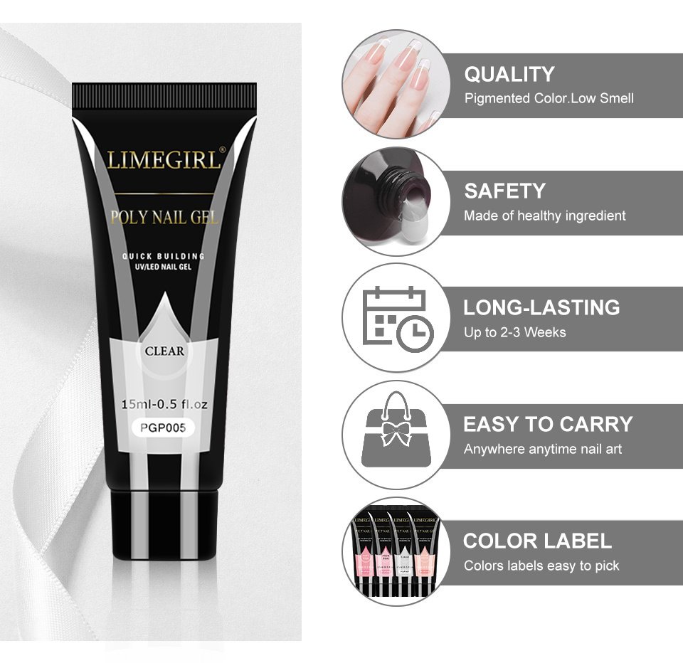 Home > Limegirl Poly Nail Gel Set Manicure Set Gel Cuticle Pusher Finger Extend Mold Nail Kit All For Quick Extension Manicure Set With Nail Uv Lamp Top Coat
